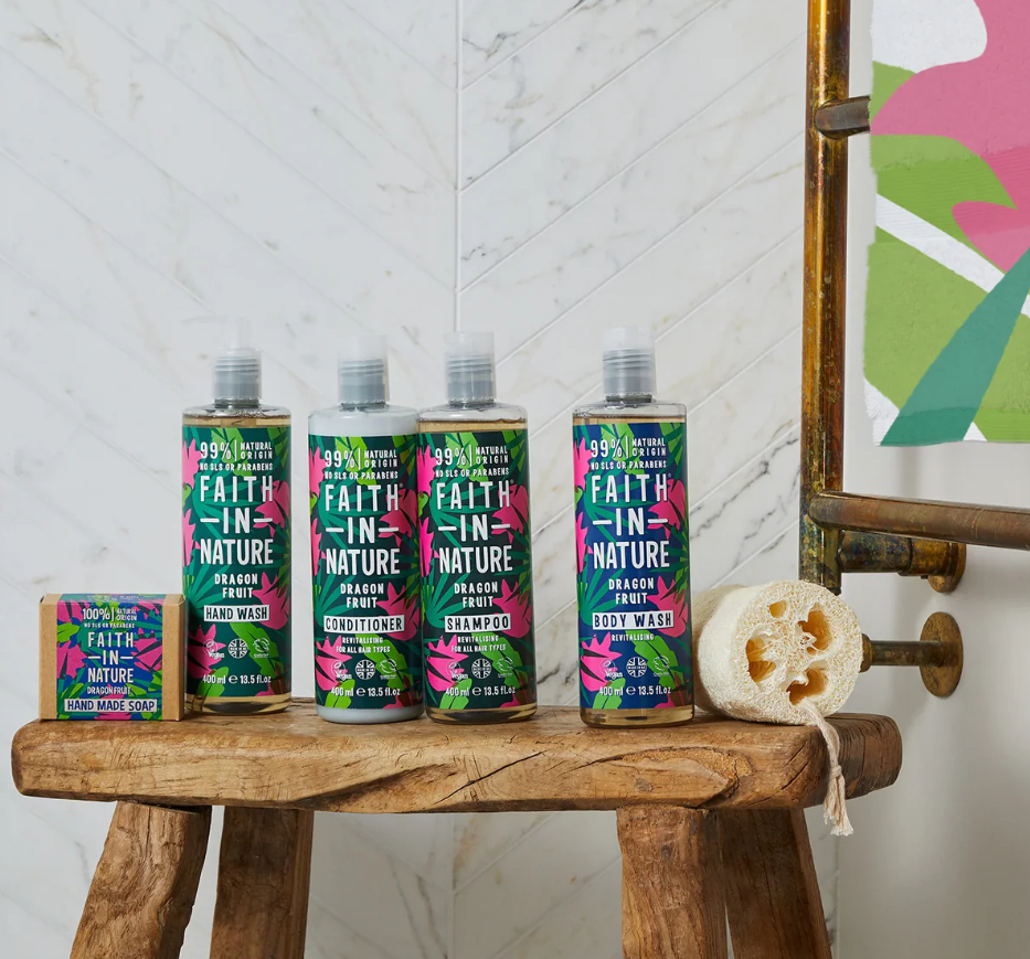 Breng een kleine hoeveelheid aan op nat haar, masseer tot het schuimt en spoel grondig uit. Gebruik voor het beste resultaat samen met de Faith in Nature Dragon Fruit Conditioner.